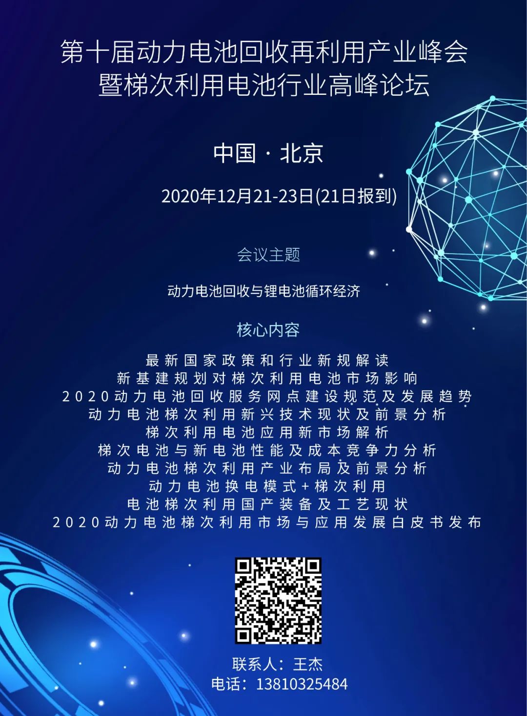 為了促進電池回收行業發展,引導廢舊動力電池回收網絡體系建立,探討新基建規劃帶來的新市場機遇,提高動力電池全生命周期價值,探索新型商業模式及盈利點。電池聯盟網、中國綠色供應鏈聯盟電池專委會、中國電子節能技術協會電池專委會、電池聯盟聯合召開“第十屆動力電池回收再利用產業峰會暨梯次利用電池行業高峰論壇”。