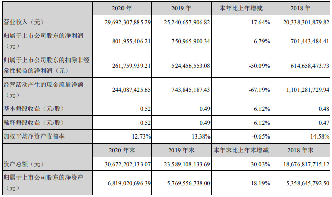 3月15日晚,欣旺達發布了2020年度報告,2020年公司實現營業總收入296.92億元,同比增長17.64%;實現歸屬母公司凈利潤8.02億元,同比增長6.79%。