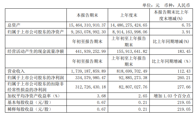 4月11日晚,璞泰來發布2021年第一季度業績公告,今年前一季度,公司營收17.39億元,同比增長112.43%;凈利潤約3.35億元,同比增長260.21%。