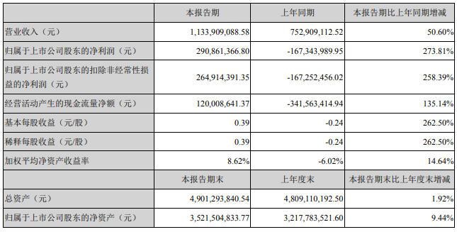 今年上半年,盛新鋰能實現營業(yè)收入11.34億元,同比增長50.60%;實現歸屬于上市公司股東的凈利潤2.91億元,去年同期虧損1.67億元。