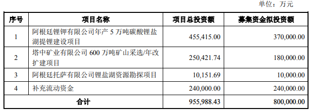 9月26日晚間,西藏珠峰發(fā)布公告稱,擬募資不超過80億元,用于阿根廷鋰鉀有限公司年產(chǎn)5萬噸碳酸鋰鹽湖提鋰建設(shè)項(xiàng)目、塔中礦業(yè)有限公司600萬噸礦山采選/年改擴(kuò)建項(xiàng)目、阿根廷托薩有限公司鋰鹽湖資源勘探項(xiàng)目和補(bǔ)充流動(dòng)資金。