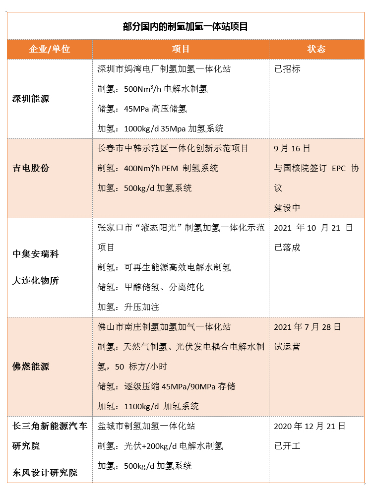 中國電池聯(lián)盟梳理發(fā)現(xiàn),除海馬汽車之外,還有多家企業(yè)單位在建設一體化制氫加氫項目。