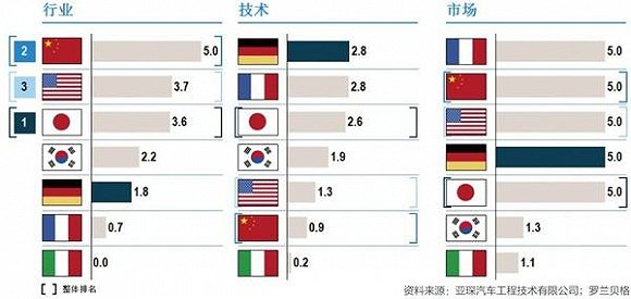 中國是不是要大力發展新能源汽車(特別是純電動汽車)以及如何發展,這是一個已經討論了近20年的問題,結果是很明確的,也是非常喜人的。按照國際權威咨詢公司羅蘭貝格最新的研究成果,如果用行業發展、技術水平及市場維度衡量電動汽車市場格局而言, 中國已經在行業發展及市場領域取得了長足的進步。